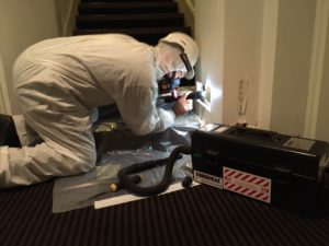 “Fire prevention and protection features were added to the building during the 1970s when asbestos was the product of choice,” says Paul Phillips, Operations Manager at Global Environmental. “In addition, there are no plans showing where it was used; some was strategic, some ad hoc. The huge benefit of these three weeks is that they gave us the opportunity and time to use fully invasive techniques to test for asbestos in a controlled environment, giving us enough information to facilitate the major refurbishment works in 2017.”